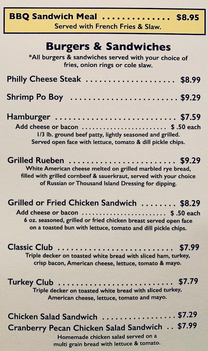 Children aren't left out; with meals like the Hamburger & Fries for $5.99, there's something for everyone. Desserts are irresistible, too—don't miss the Banana Pudding and the Monthly Featured Dessert for only $4.99!